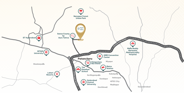 Aspen by Tattva is a thoughtfully planned residential plotting community spread across 55.12 acres in Patancheruvu, one of Hyderabad’s rapidly developing locales. The project offers 582 premium residential plots, designed to provide ample space for building your dream home within a secure and well-planned environment.